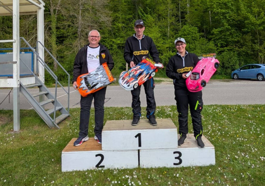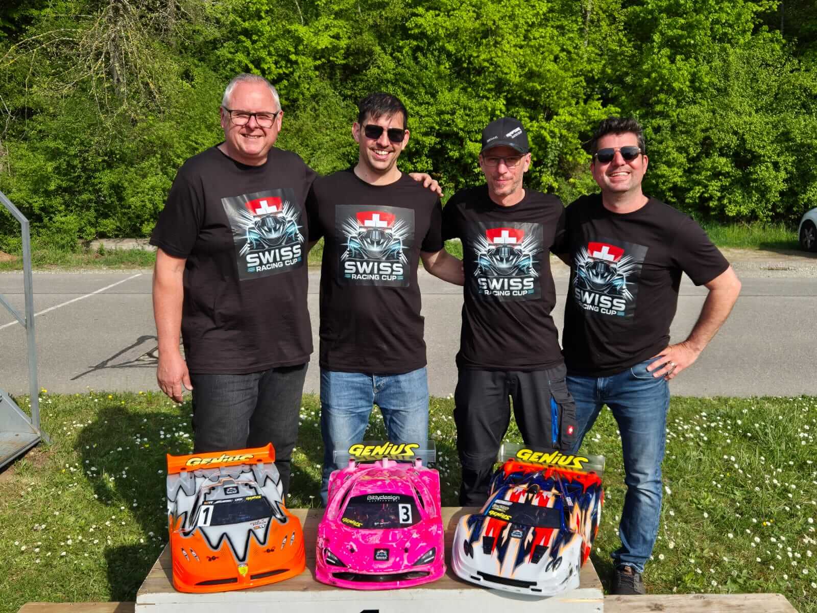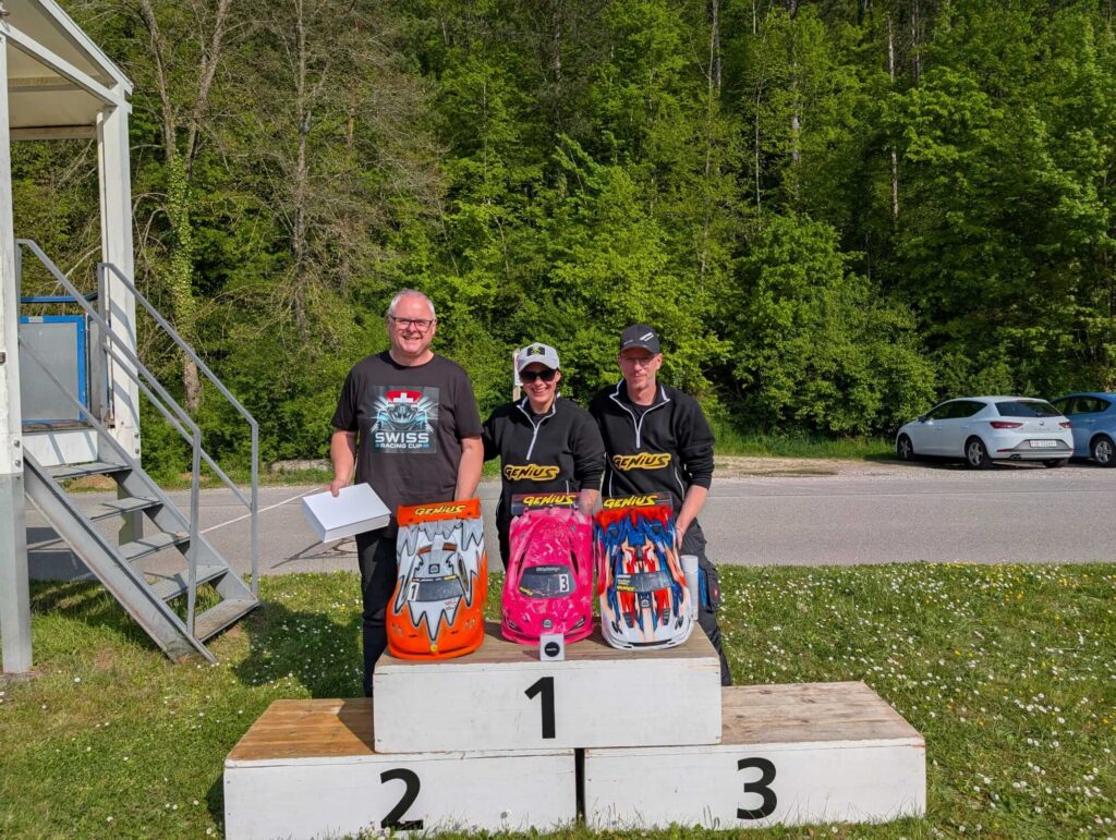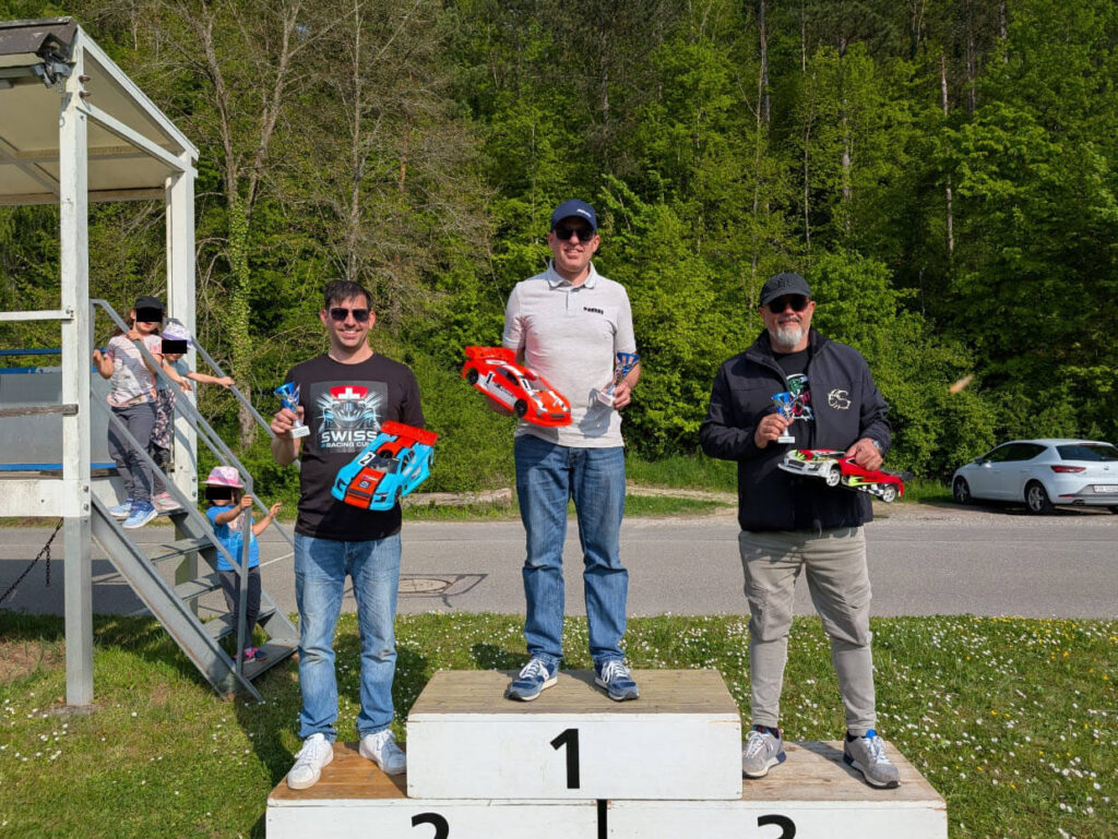 Am letzten Aprilwochenende war es endlich soweit. Wir konnten bei gutem Wetter den ersten und zweiten Lauf am Samstag und Sonntag durchführen. Erstmals waren bei der 1:10er Klasse die neuen OS TG Stockmotoren im Einsatz und konnten sich bestens beweisen. Einige tüftelten noch an der optimalen Kupplung. Die Realität hat gezeigt, dass diese Motoren nur minimal langsamer auf eine Runde sind, als die schnellen und teuren Motoren. Ebenfalls zur Schweizer Premiere ist es mit der neuen 1:8 GTE Klasse gekommen. Leider nur mit zwei Piloten und einer Pilotin, da am gleichen Wochenende zeitgleich eine andere Rennveranstaltung stattgefunden hat. Nichts desto trotz hat sich der geänderte Rennmodus und Zeitplan gut bewiesen. In der 1:10er Nitroklasse durfte sich der erst 9-Jährige Adrian mit den anderen Piloten messen und fuhr sein erstes Rennen. Bei der Siegerehrung konnten wir nebst Trophäen, Sponsorengeschenke verlosen. Vielen Dank an die Unterstützer.